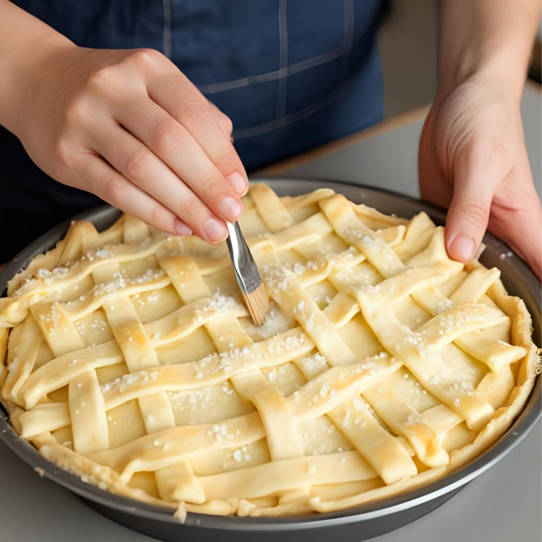 Optional lattice: Cut strips, weave on top, brush with butter, and sprinkle flaky salt.